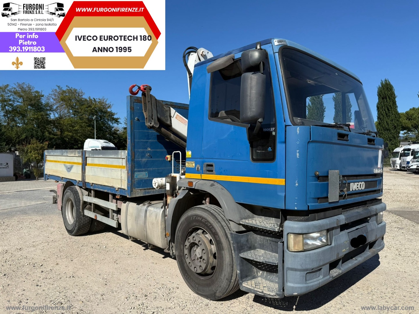 IVECO EUROTECH 180-27 -ANNO 1995 -km 500.000 CIRCA -EURO 1 DUE ASSI -CAMBIO ZF -REVISIONE VALIDA FINO 04 2026- TUTTI DOCUMENTI GRU -CASSONE FISSO MISURE UTILI: *LUNGHEZZA 4,45 *LARGHEZZA 2,43 *PORTATA UTILE 9.000kg - MODELLO GRU BUONFIGLIOLI P 10200L DUE SFILI PORTATA PRIMO SFILO 2450 kg TUTTO FUNZIONANTE E GOMMATA 70% PREZZO EURO 9.900 + IVA************************************************CHIAMACI PER QUALSIASI INFO!!!PIETRO - CELL. 3931911803*************************************************** I prezzi si intendono esclusa iva e passaggio di proprietà.Le informazioni relative alle vetture e alla documentazione , per quanto accurate, potrebbero tuttavia contenere errori o imprecisioni. Quanto descritto non ha pertanto valore contrattuale, ma solo informativo. L'onere di verifica è riservato all'acquirente. Nella possibilità di un continuo aggiornamento, i prezzi sono da considerarsi indicativi e non comprendono eventuali migliorie.